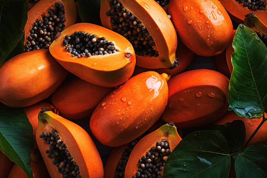Carica papaya foi a primeira fruteira transgénica a ter o seu genoma integralmente sequenciado.
